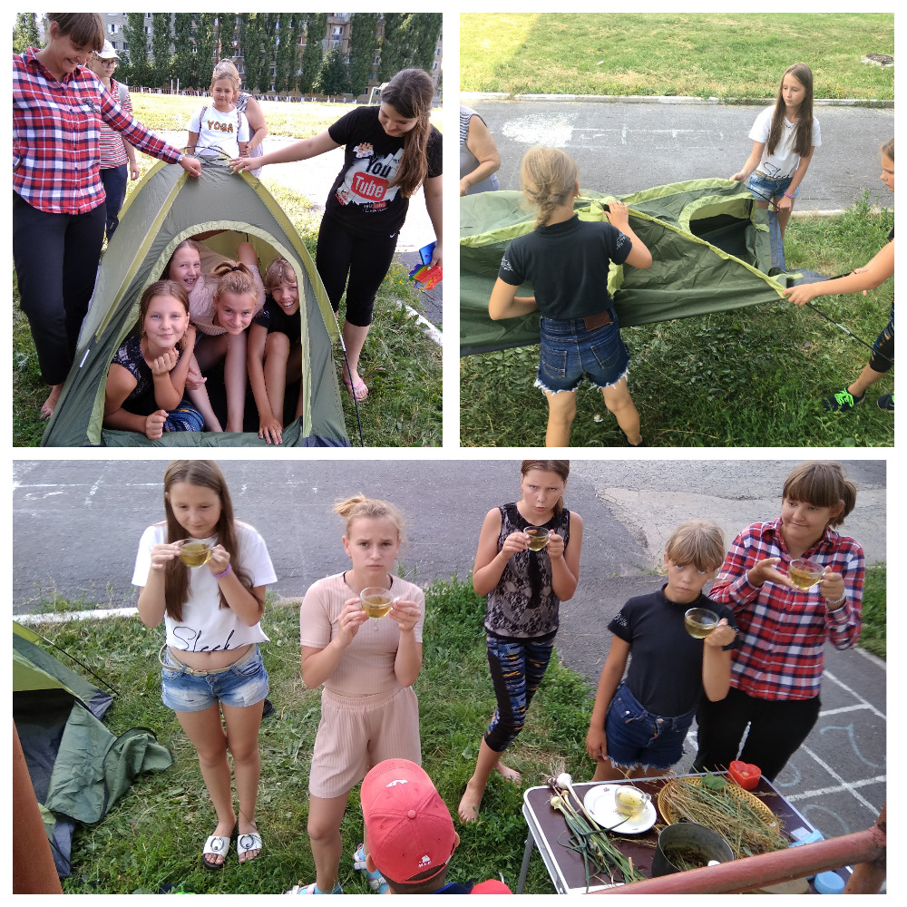 Ребята с увлечением принимались за выполнения заданий, узнавали много нового и интересного. Юные туристы вязали узлы, собирали рюкзак, работали с компасом, ставили и разбирали палатку, рассказывали о полезных растениях. Усталые, но счастливые пили «полезный чай», заваренный в самом настоящем походном котелке.